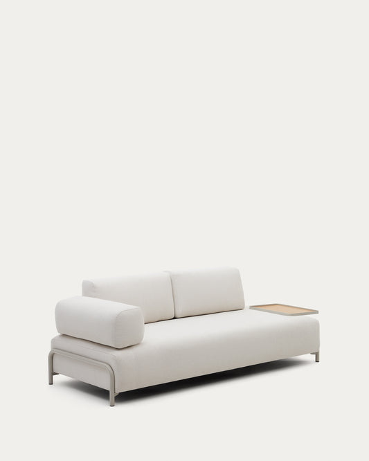 Compo 3-seater sofa chenille beige, large tray oak veneer and beige metal structure 232cm FSC Mix Credit