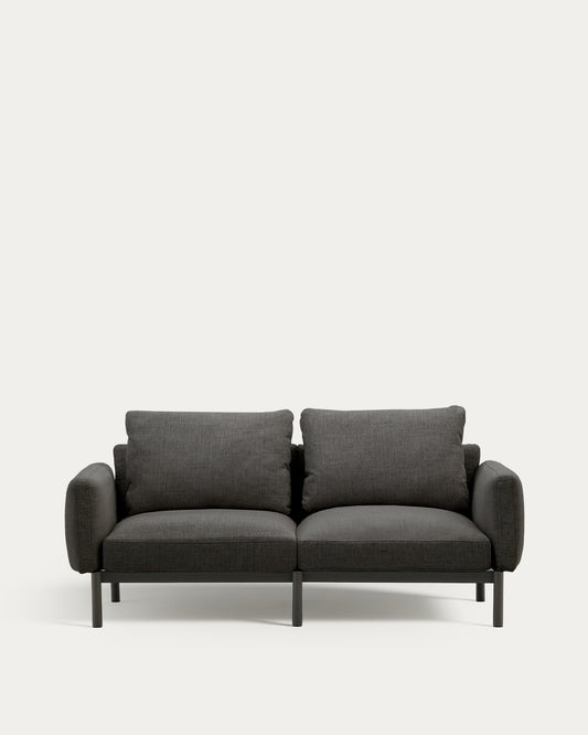 - Sorells modular 2-seater outdoor sofa with dark grey upholstery and aluminium structure with grey finish.