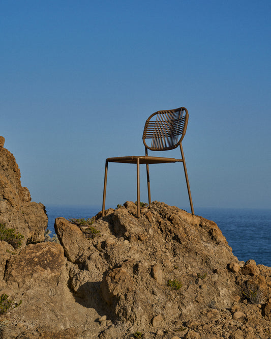Talaier stackable outdoor chair in synthetic rope and galvanised steel with brown finish