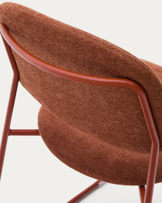 Meli stackable chair in terracotta chenille with terracotta metal legs FSC Mix Credit