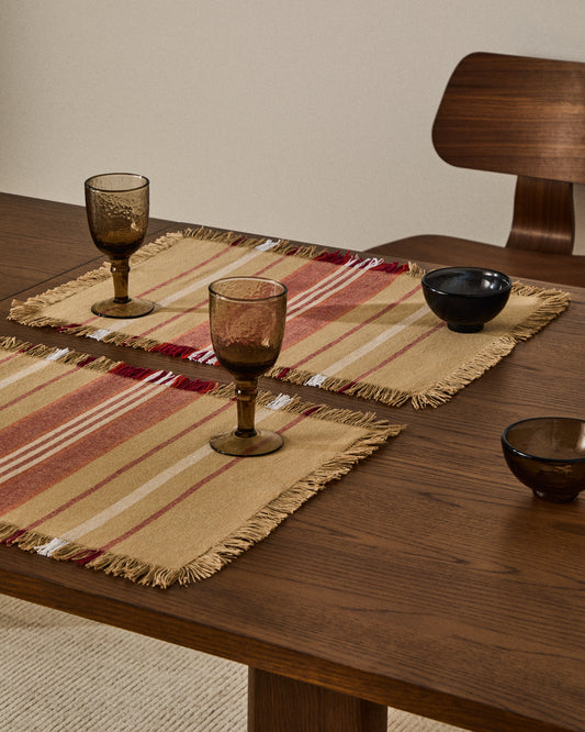 Davia set of 2 placemats in 100% cotton with red stripes and fringed detail 35 x 50cm