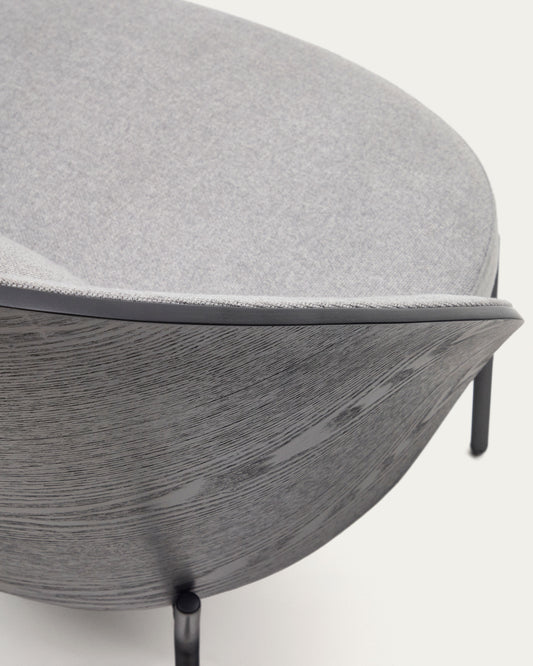 Eamy light grey armchair in an ash wood veneer with a black finish and black metal