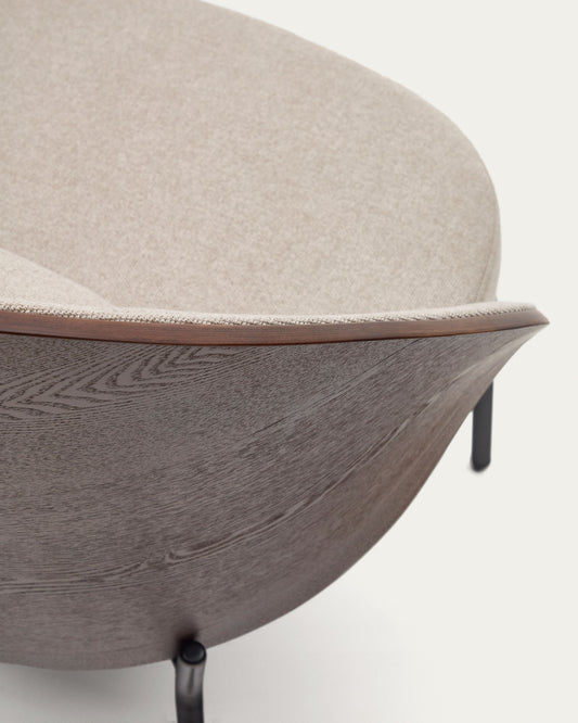 Eamy light brown armchair in an ash wood veneer with a walnut finish and black metal
