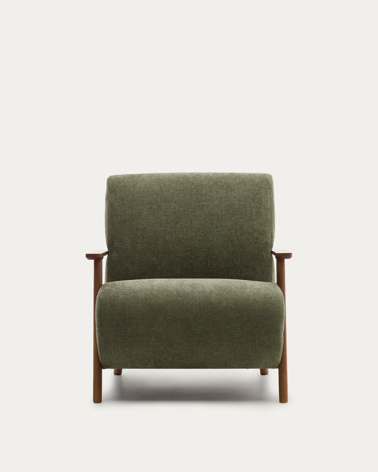 Meghan armchair in green chenille and solid ash wood with walnut finish FSC Mix Credit