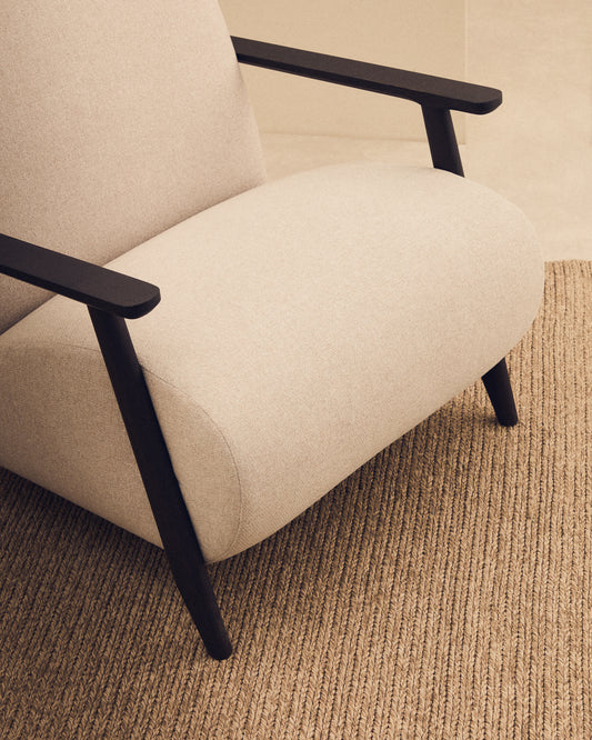 • Upholstered armchair with a tight-knit, pearl-coloured chenille fabric.