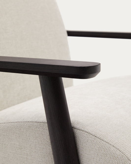 Meghan armchair in pearl chenille and with solid beech wood in a wenge finish FSC Mix Credit