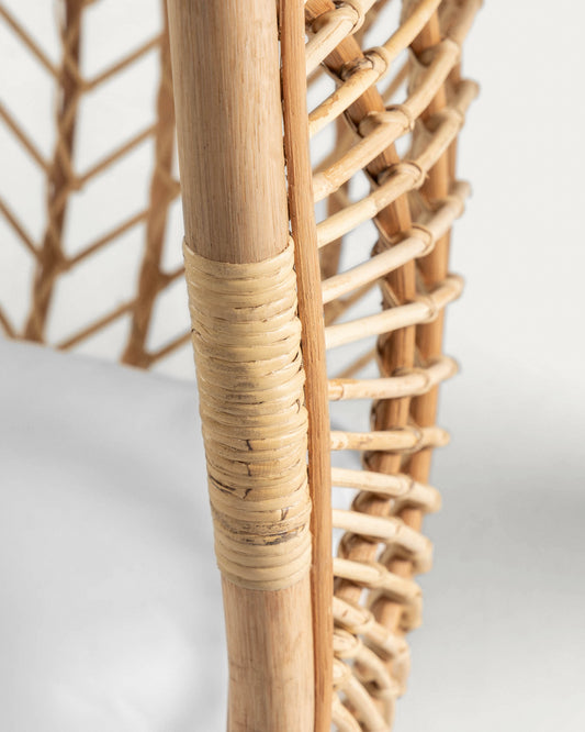 - Armchair with handwoven rattan structure.