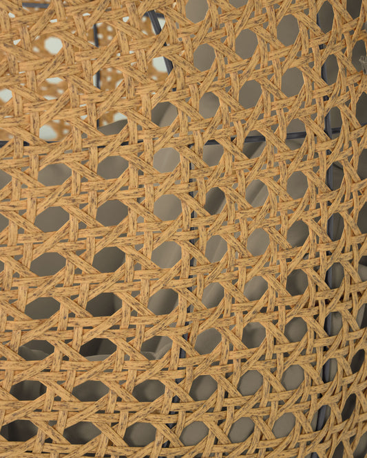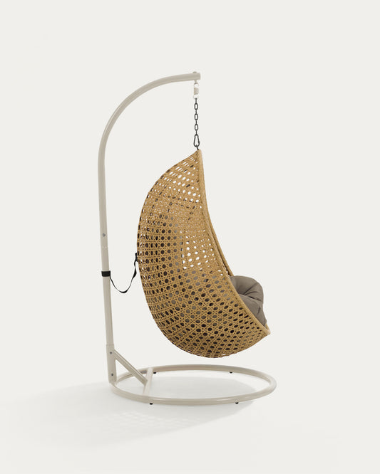 - Hanging armchair made of poly rattan with natural hand-braided finish.