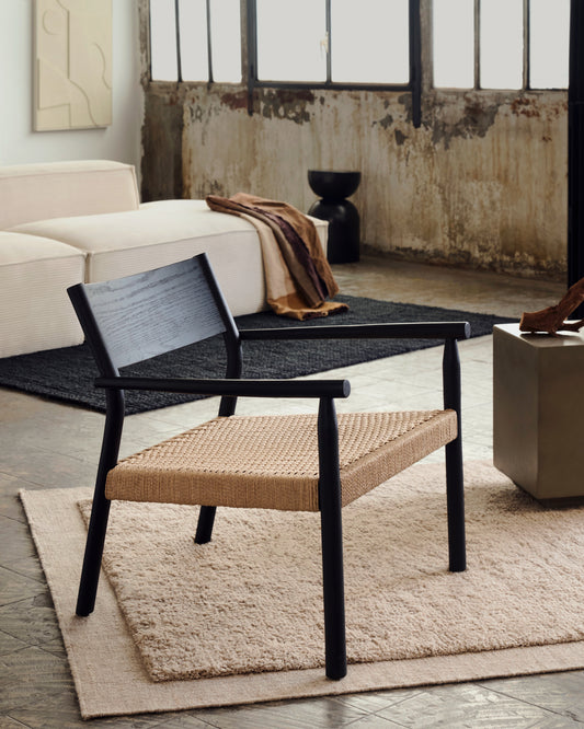Yalia armchair in solid oak with a black finish and paper rope seat FSC 100%