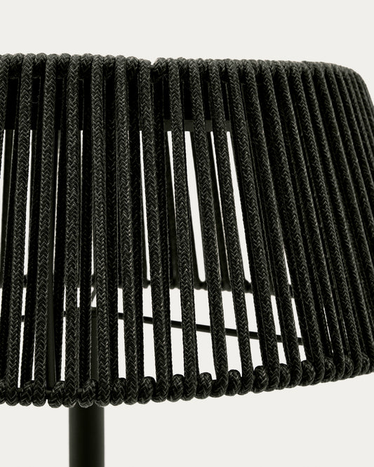 Aldet outdoor solar floor lamp in black and green mottled rope cord with black metal stand Ø46cm