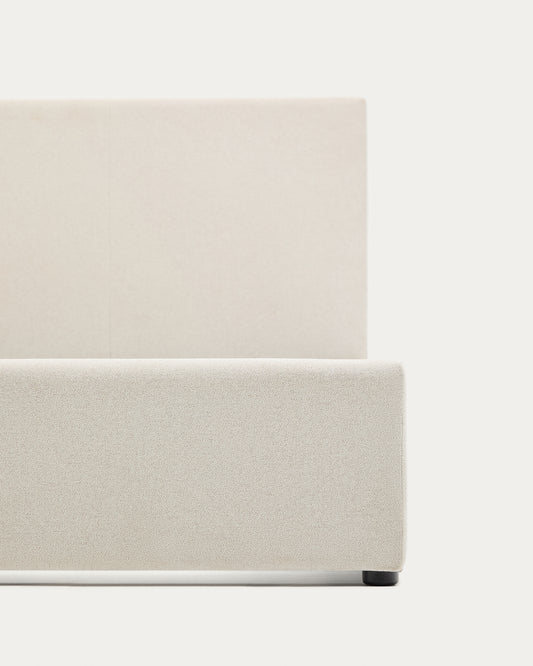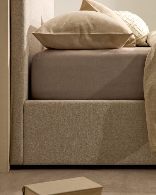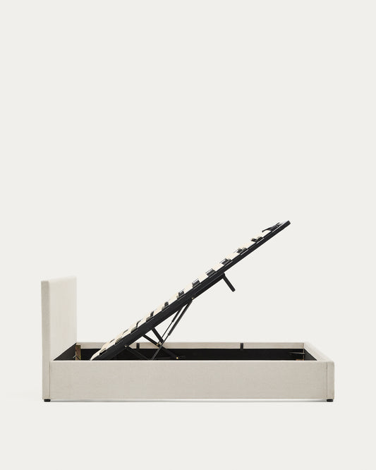 Nahiri beige chenille lift-up storage bed for a 150 x 200 cm mattress