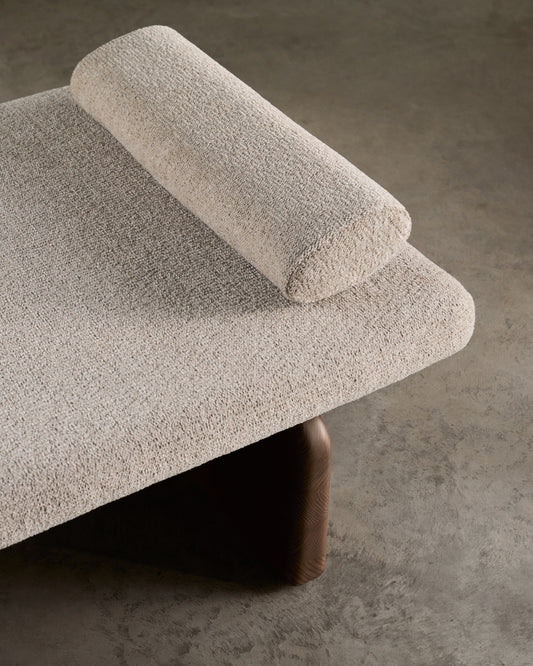 • Divan upholstered in a thick, beige chenille fabric with recycled polyester.