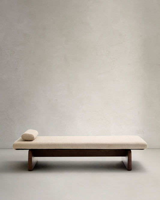Topaz divan in beige chenille with solid ash wood in a walnut finish, 200 cm FSC 100%