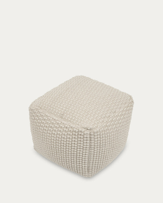 Mascarell pouffe, cotton and polyester in white, 45 x 45 cm