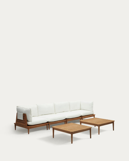Portitxol set of 2 corner armchairs, 2 armchairs and 2 coffee tables in solid teak