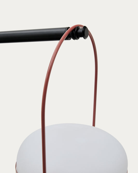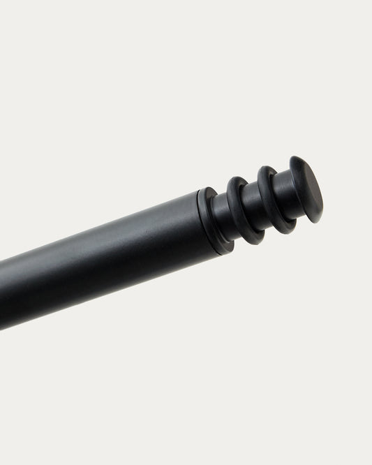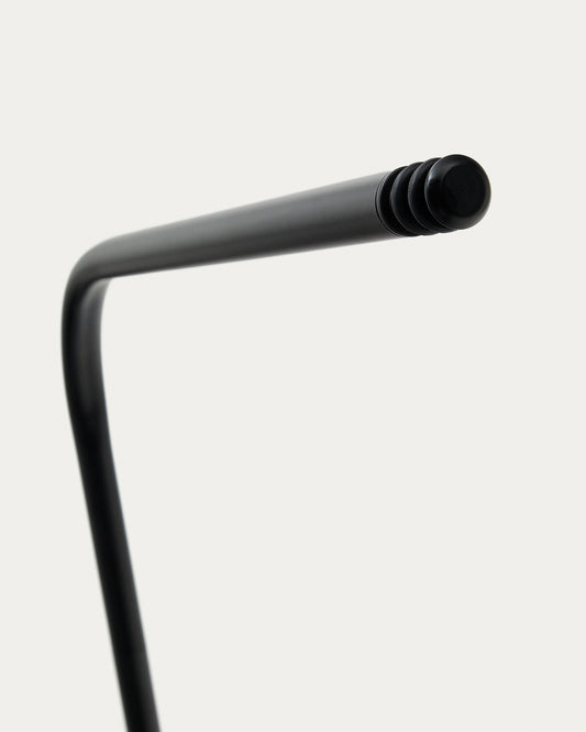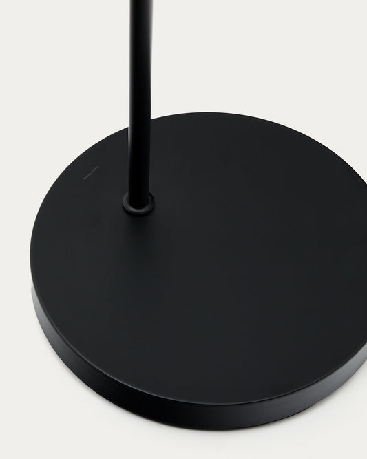 - Portable lamp stand made of metal with a sleek black painted finish.