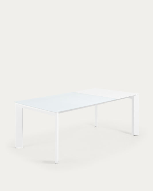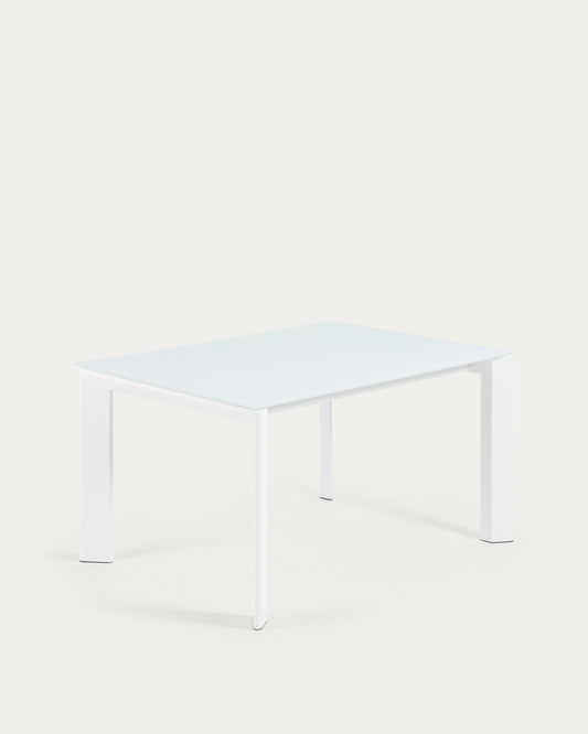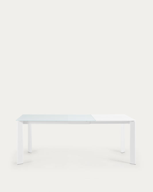 Axis white glass extendable table with white steel legs 140 (200) cm
