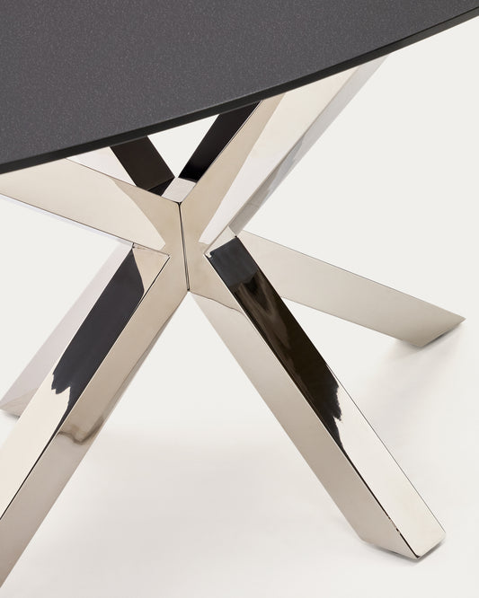 Argo oval table in matt black glass and stainless steel legs Ø 200 x 100 cm