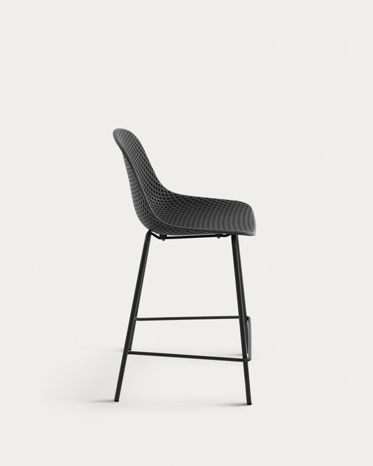 The seat of the Quinby stool is made from recyclable plastic, supported by a metal structure. It's a multi-use piece with infinite possibilities for your interior and outdoor spaces.