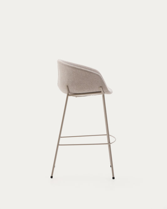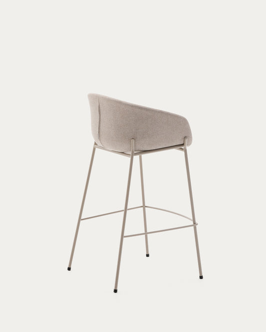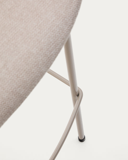 Yvette stool in beige chenille and steel legs in a beige finish, 75 cm high
