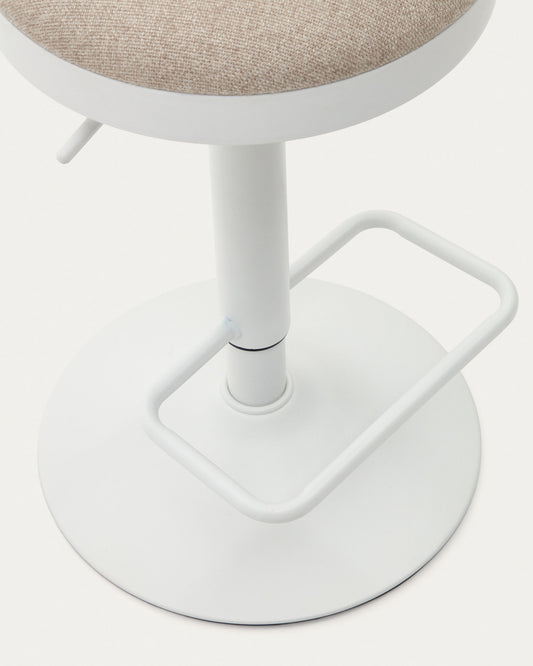 Zaib stool in beige chenille and matt white steel height 63-84 cm FSC 100%