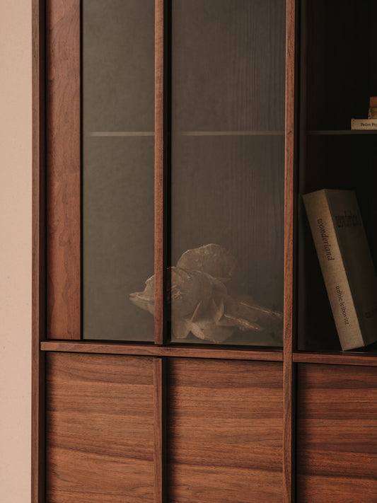 Onix display cabinet solid walnut and walnut veneer dark finish 100 x 170 cm FSC Mix Credit