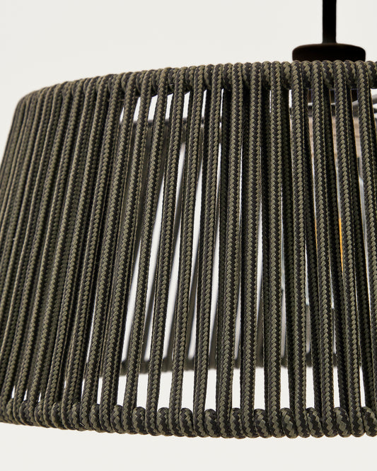 - Abat-jour pour suspension en corde tressée chinée de couleur noire et verte.