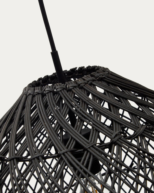 Abat-jour pour suspension Domitila en rotin avec finition peinture noire Ø 44 cm