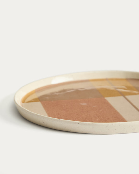 La collection Julnet se distingue par son design graphique, où les tons neutres et les motifs géométriques se combinent pour apporter une touche sophistiquée et contemporaine à la table. Cette pièce est en céramique, avec une surface douce au toucher et résistante à un usage quotidien.
