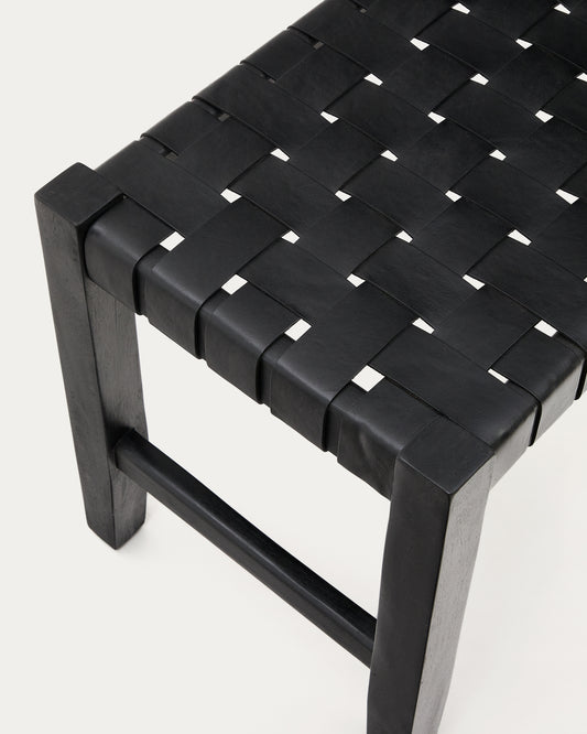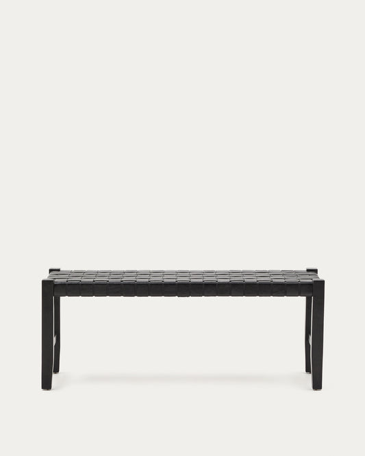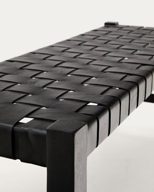 Banc Calixta en cuir et bois de acajou avec finition noire 120 cm