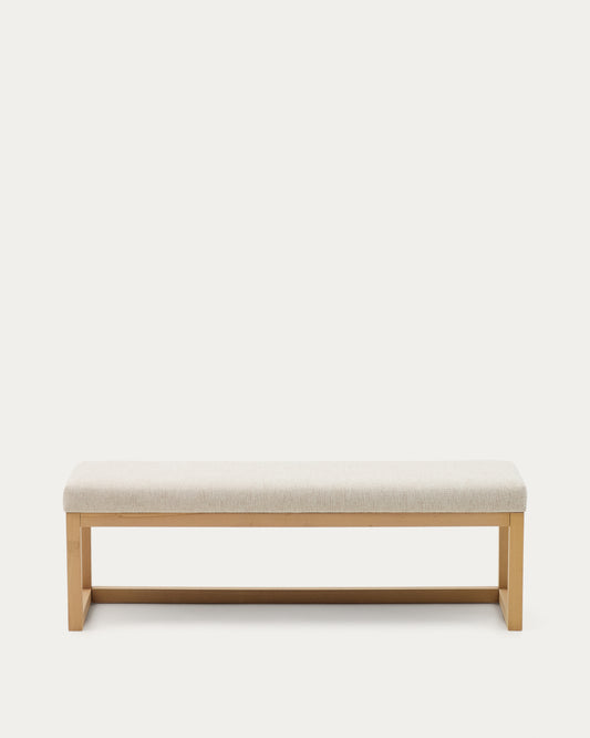 - Banquette tapissée en chenille beige et structure en bois de hêtre.
