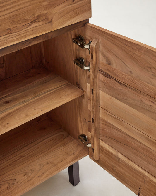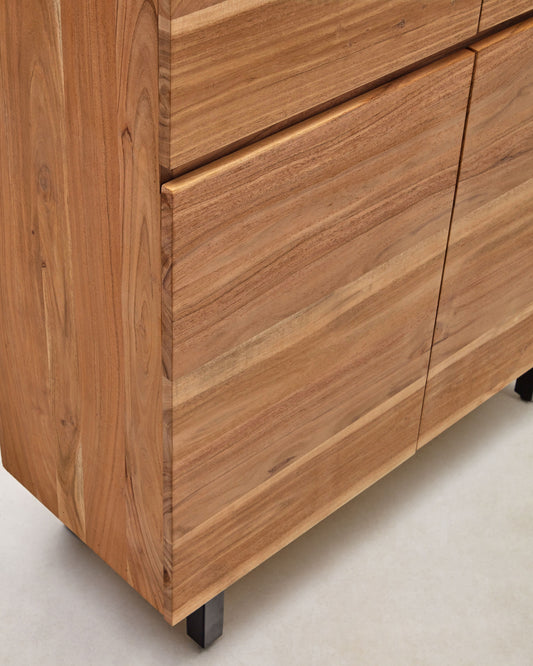Buffet haut Uxue 4 portes en bois d’acacia avec finition blanchie et acier noir 100 x 155 cm