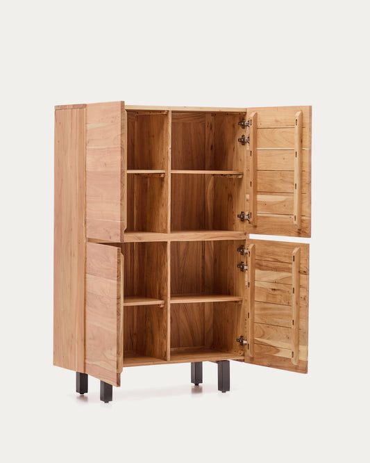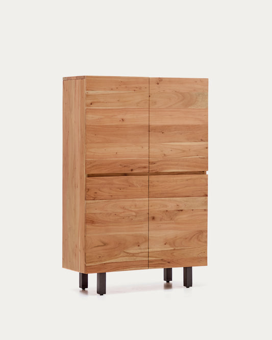 Buffet haut Uxue 4 portes en bois d’acacia avec finition blanchie et acier noir 100 x 155 cm