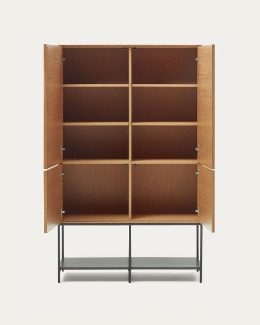 Buffet haut Vedrana 4 portes placage de chêne et pieds en acier noir 97,5 x 160 cm