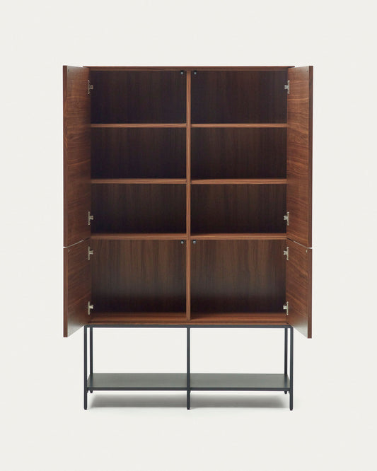 Buffet haut Vedrana 4 portes placage de noyer et pieds en acier noir 97,5 x 160 cm