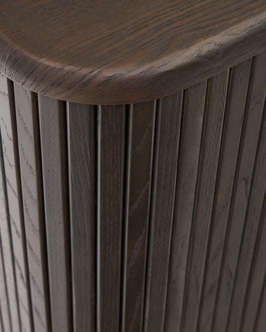 - Buffet fait en placage de frêne avec finition foncée.