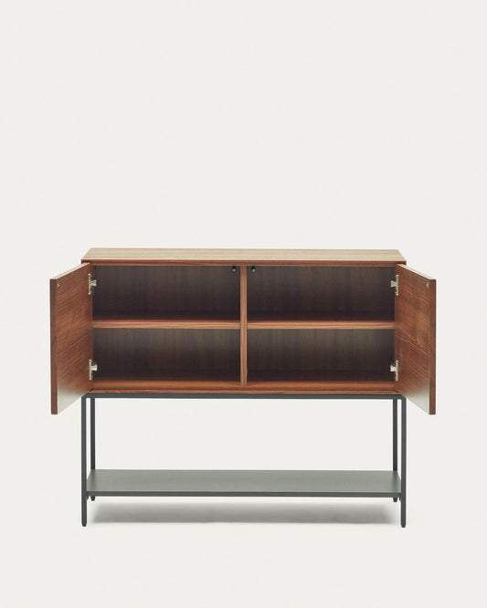 Buffet Vedrana 2 portes placage de noyer et pieds en acier noir 97,5 x 80 cm