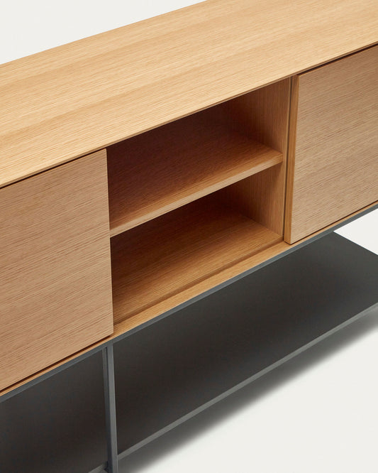 Buffet Vedrana 3 portes placage de chêne et pieds en acier noir 195 x 80 cm