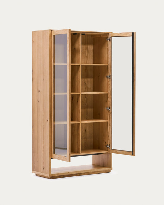 Buffet vitrine Alguema en placage de chêne finition naturelle 100 x 185 cm