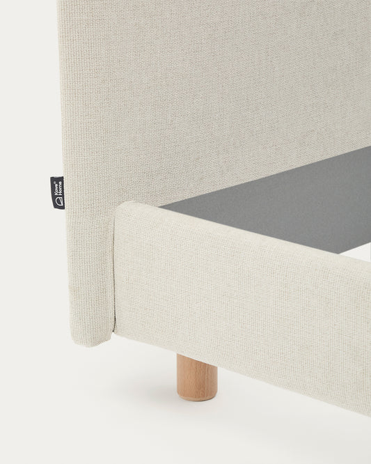 Cadre de lit déhoussable Valma en tissu chenille perle avec pieds en bois de hêtre pour lit de 160 x 200 cm.