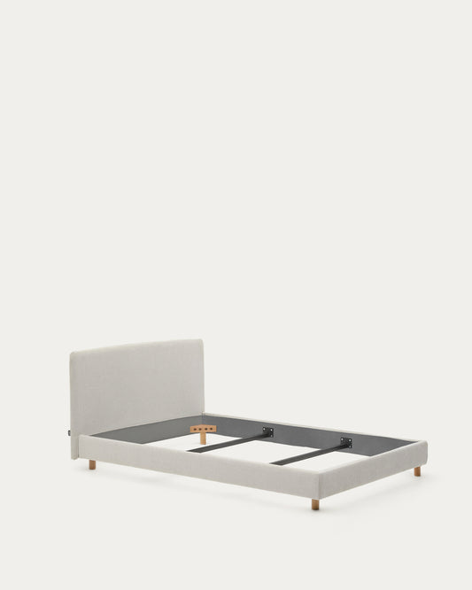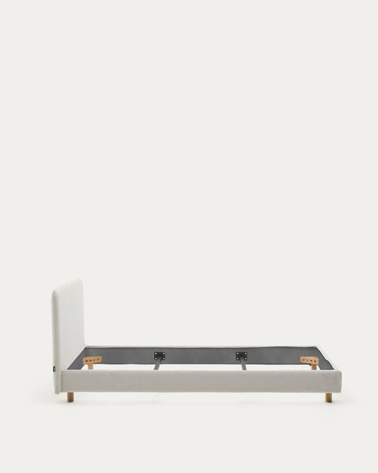 Cadre de lit déhoussable Valma en tissu chenille perle avec pieds en bois de hêtre pour lit de 90 x 200 cm.