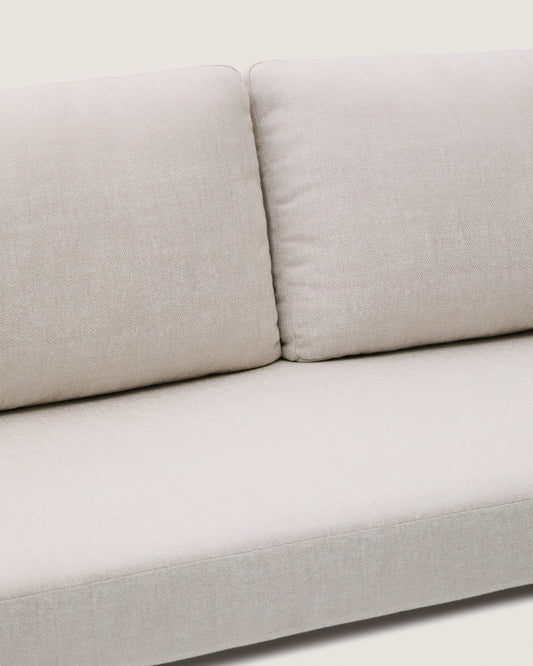 Le canapé 3 places Sedalis allie élégance et durabilité tout en s’adaptant à tous les espaces. Avec une structure en aluminium et une assise et un dossier en corde tressée à la main résistante aux rayons UV, il se distingue par son design léger et contemporain. L’innovant traitement E-Coating offre une résistance maximale à la rouille et à la corrosion, ce qui le rend idéal pour une utilisation aussi bien en intérieur qu’en extérieur. Les coussins sont déhoussables, déperlants et résistants aux rayons UV. De plus, ils sont fabriqués à partir de 95 % de matériaux recyclés et proviennent d’un fournisseur certifié Global Recycled Standard, label qui garantit la réduction de l’impact néfaste de la production sur les personnes et l’environnement. Pour faciliter l’entretien, il est recommandé de les protéger en cas de pluie.