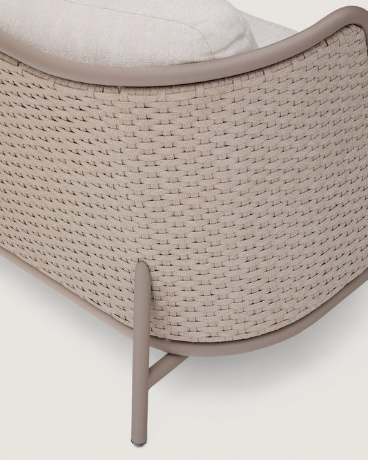 • Canapé 3 places en aluminium avec dossier et assise en corde tressée à la main résistante aux rayons UV.