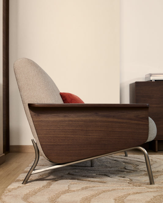 Canapé Amsen marron clair de 2 places en contreplaqué de noyer avec pieds en acier inoxydable brossé 165 cm