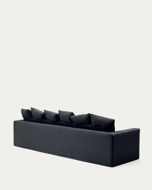 Canapé déhoussable Nora 4 places avec coussins en lin et coton gris anthracite 340 cm
