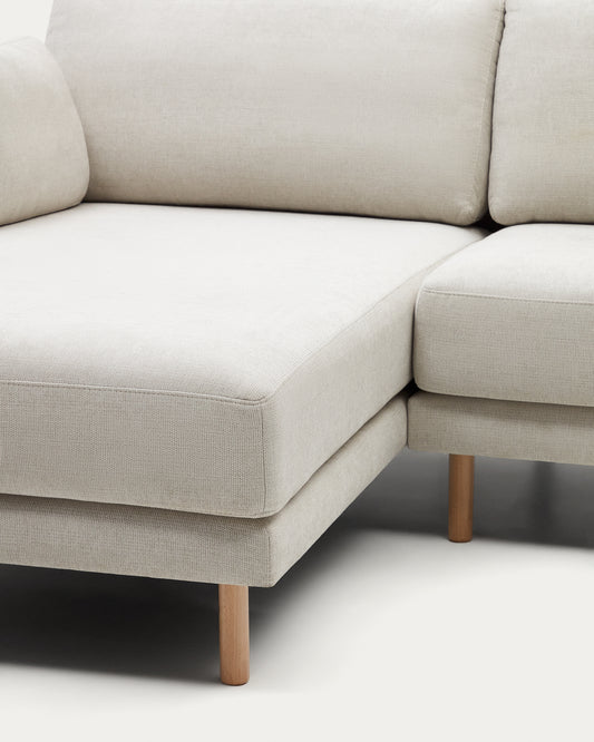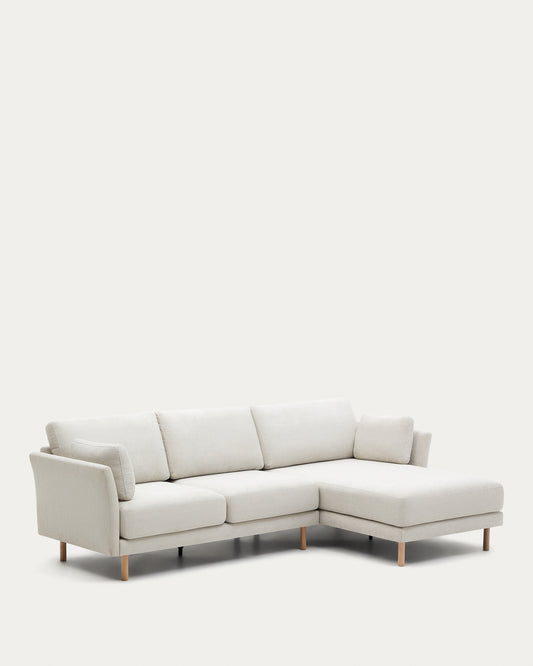 Canapé Gilma 3 places chenille perle pieds finition naturelle et méridienne droite ou gauche 260cm