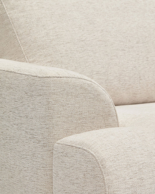 Canapé Karin 3 places en chenille beige et pieds en bois de hêtre avec finition ton noyer 231 cm
