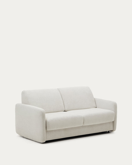 - Canapé-lit tapissé en tissu chenille à petite structure de couleur perle avec traitement antitaches. Assises et dossiers déhoussables.
