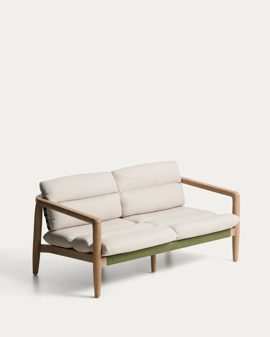Canapé Menfi 3 places en bois d’acacia et corde verte 136 cm