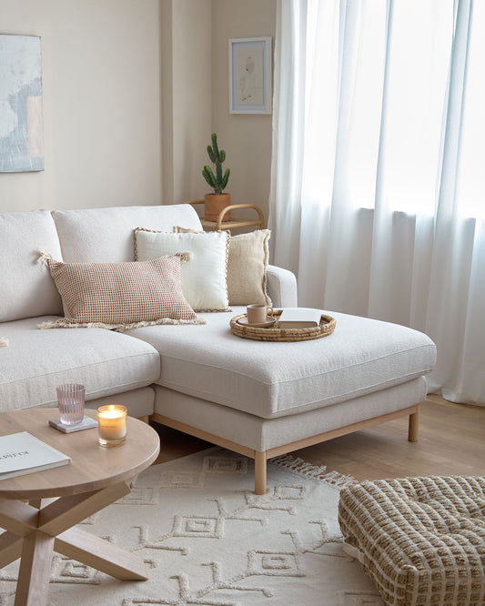 Mihaela est un design de Kave Home pensé pour ajouter une touche tendance avec son revêtement en micro bouclette. Fabriqué localement, il est aussi respectueux de la planète grâce à son garnissage en PET recyclé.